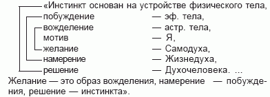 Представление: что вновь возникает изнутри как образ. — Процесс восприятий чувств — процесс в эфирном — процесс в теле.